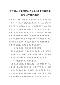 市中级人民法院党组关于2025年度民主生活会召开情况报告