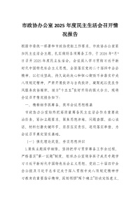 市政协办公室2025年度民主生活会召开情况报告