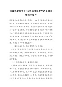市政协党组关于2025年度民主生活会召开情况的报告