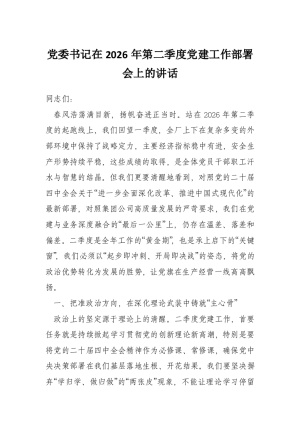 党委书记在2026年第二季度党建工作部署会上的讲话