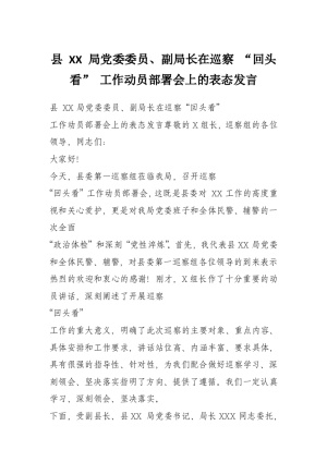 县 XX 局党委委员、副局长在巡察 “回头看” 工作动员部署会上的表态发言