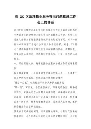 在 XX 区治理物业服务突出问题推进工作会上的讲话