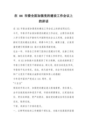 在 XX 市委全面加强党的建设工作会议上的讲话