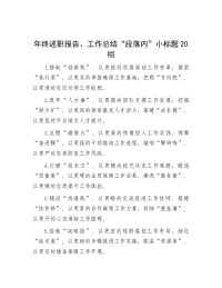 各类实用小标题集锦(部署讲话、汇报、发言、总结、存在问题点评、述职述廉