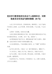 组织生活会个人检视发言、对照检查发言实用金句素材集锦(80句)