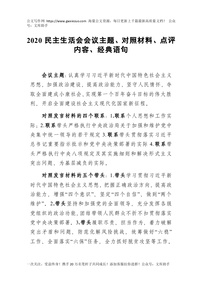 最新!2020民主生活会会议