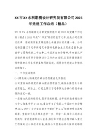 XX市XX水利勘测设计研究院有限公司2025年党建工作总结(精品)