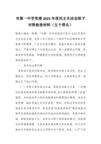 市第一中学党委2025年度民主生活会班子对照检查材料(五个带头)