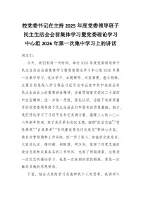 校党委书记在主持2025年度党委领导班子民主生活会会前集体学习暨党委理论学习中心组2026年第一次集中学习上的讲话