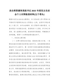县自然资源局党组书记2025年度民主生活会个人对照检查材料(五个带头)
