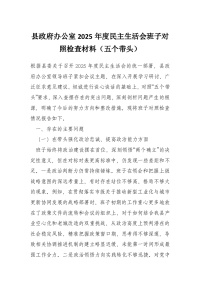县***办公室2025年度民主生活会班子对照检查材料(五个带头)