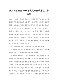 县人民检察院2025年度党风廉政建设工作总结
