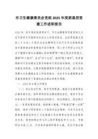 市卫生健康委员会党组2025年度抓基层党建工作述职报告