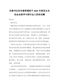 市委书记在市委常委班子2025年度民主生活会会前学习研讨会上的讲话稿