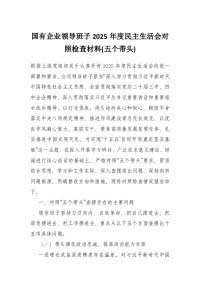 国有企业领导班子2025年度民主生活会对照检查材料(五个带头)