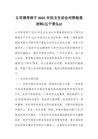 公司领导班子2025年民主生活会对照检查材料(五个带头)2