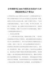 公司党委书记2025年度民主生活会个人对照检查材料(五个带头)5