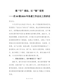 在XX镇2026年务虚工作会议上的讲话:循“行”谋远,以“稳”驭变