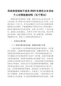 民政局党组班子成员2025年度民主生活会个人对照检查材料(五个带头)