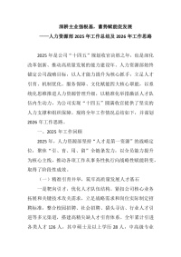 深耕主业强根基,蓄势赋能促发展——人力资源部2025年工作总结及2026年工作思路