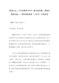 聚焦主业,五年深耕笃行实干 锚定高质量,厚植发展新动能——贵阳城投集团“十四五”发展综述