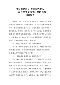 守好党建初心 育好时代新人——XX小学党支部书记2025年度述职报告(1)