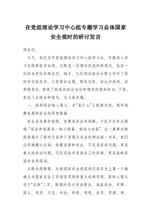在党组理论学习中心组专题学习总体国家安全观时的研讨发言