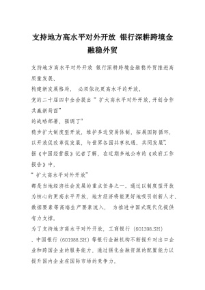 支持地方高水平对外开放 银行深耕跨境金融稳外贸