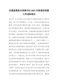 纪委监委机关党委书记2025年抓基层党建工作述职报告