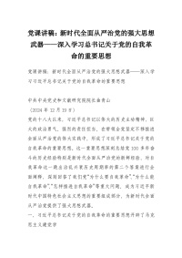 党课讲稿:新时代全面从严治党的强大思想武器——深入学习总书记关于党的自我革命的重要思想
