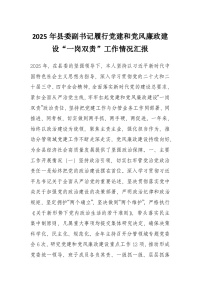 2025年县委副书记履行党建和党风廉政建设“一岗双责”工作情况汇报