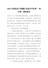 2025年度党员干部履行全面从严治党“一岗双责”情况报告