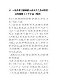 在XX区委密切联系群众解决群众急难愁盼动员部署会上的讲话(精品)