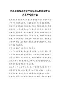 以高质量贸易投资产业促进工作推动扩大高水平对外开放