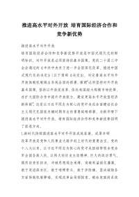 推进高水平对外开放 培育国际经济合作和竞争新优势