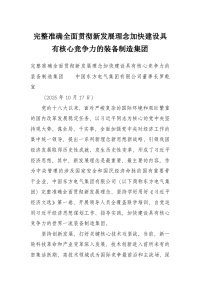 完整准确全面贯彻新发展理念加快建设具有核心竞争力的装备制造集团