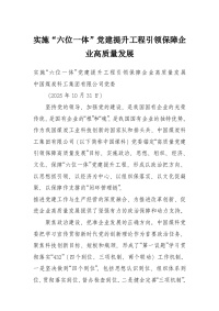 实施“六位一体”党建提升工程引领保障企业高质量发展