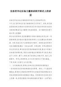 全县村书记后备力量培训班开班式上的讲话