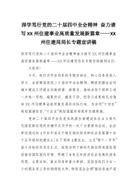 深学笃行党的二十届四中***精神 奋力谱写XX州住建事业高质量发展新篇章——XX州住建局局长专题宣讲稿