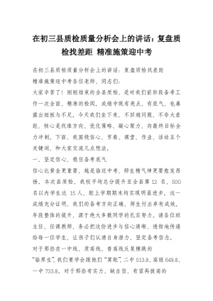 在初三县质检质量分析会上的讲话:复盘质检找差距 精准施策迎中考