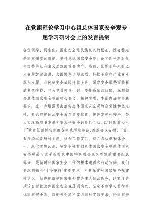 在党组理论学习中心组总体国家安全观专题学习研讨会上的发言提纲