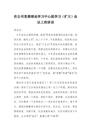 在公司党委理论学习中心组学习(扩大)会议上的讲话