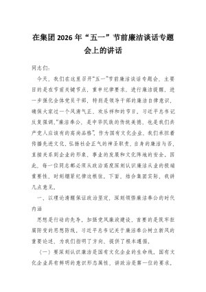 在集团2026年“五一”节前廉洁谈话专题会上的讲话