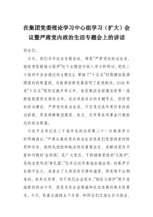在集团党委理论学习中心组学习(扩大)会议暨严肃党内政治生活专题会上的讲话