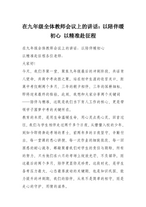 在九年级全体教师会议上的讲话:以陪伴暖初心 以精准赴征程