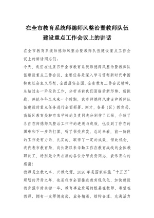 在全市教育系统师德师风整治暨教师队伍建设重点工作会议上的讲话