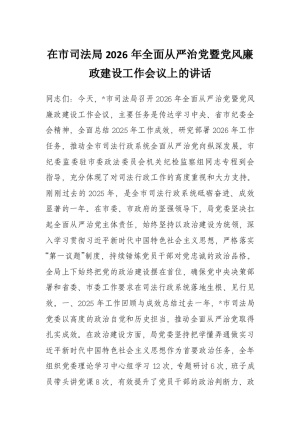 在市司法局2026年全面从严治党暨党风廉政建设工作会议上的讲话