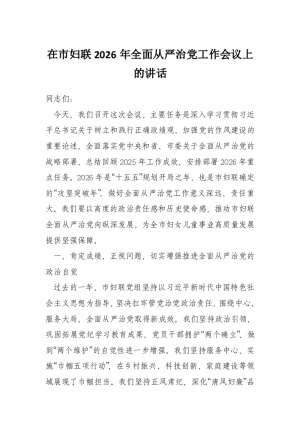 在市妇联2026年全面从严治党工作会议上的讲话