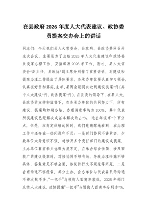 在县***2026年度人大代表建议、政协委员提案交办会上的讲话