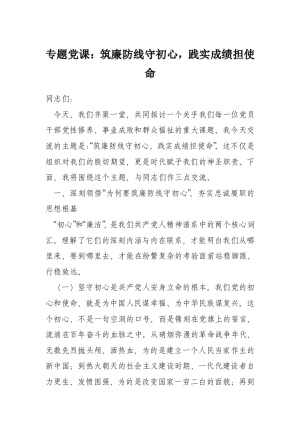 专题党课:筑廉防线守初心,践实成绩担使命